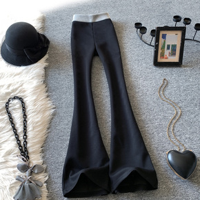 黑色微喇裤女秋冬季新款时尚显瘦修身拖地长裤垂感卫裤休闲马蹄裤