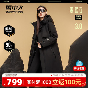 【黑曜石鹅绒服】雪中飞女士长款鹅绒风衣羽绒服重磅加厚高级黑