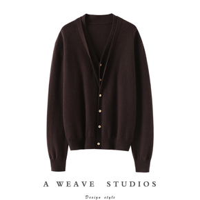 实力百搭款~假两件V领羊绒开衫女纯羊绒毛衣针织开衫外套宽松秋冬