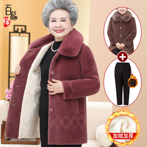 中老年人冬装加绒加厚大衣奶奶仿水貂绒保暖棉袄妈妈洋气太太衣服